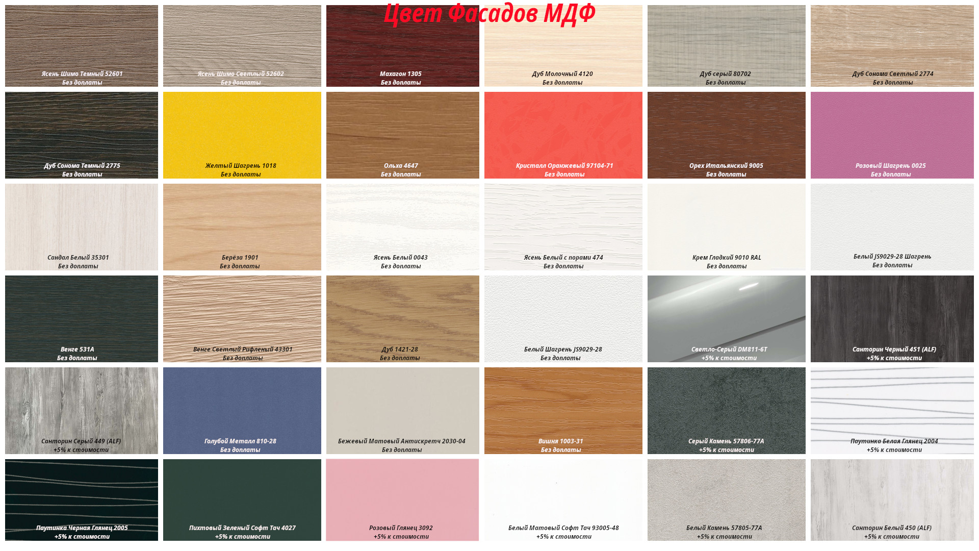 Вся гамма оттенков: Выбирайте цвет корпуса и фасада из широкой палитры оттенков, доступных в нашем каталоге. От классической древесины до ярких и современных тонов – ваш выбор неограничен. Мы с радостью поможем подобрать идеальное цветовое решение, гармонично сочетающееся с вашим интерьером.