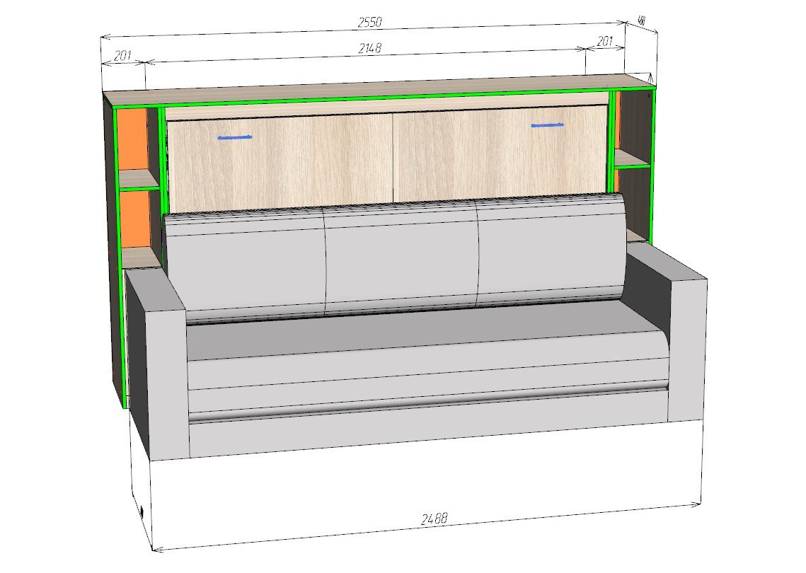 Шкаф-кровать с диваном Пальма — практичное решение для организации пространства в небольших квартирах и студиях. Эта минималистичная модель совмещает в себе: