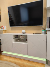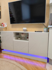 Тумба под ТВ Астон-2 станет стильным и функциональным дополнением современной гостиной. Модель привлекает внимание выразительной фрезеровкой фасадов, благодаря которой телевизионная зона выглядит более аккуратно, современно и интересно. Продуманная конструкция сочетает закрытые и открытые секции, позволяя удобно разместить технику, аксессуары и предметы декора.