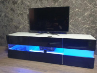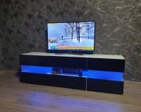 За фасадами расположены удобные секции для хранения техники, аксессуаров, документов и декоративных предметов. Провода можно аккуратно скрыть за задней панелью, чтобы телевизионная зона выглядела аккуратно и организованно. При необходимости тумбу можно дополнить стеклянными или деревянными полками, а также выбрать подходящие размеры, цветовое исполнение и вариант фурнитуры.